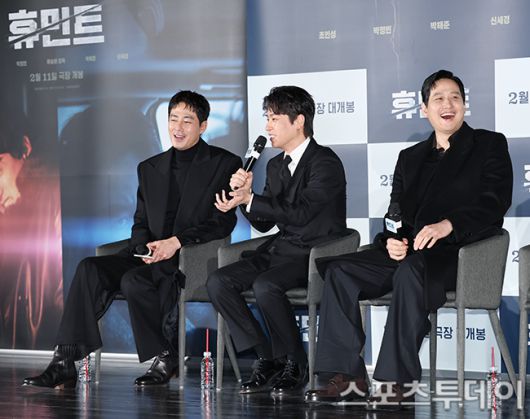 [스포츠투데이 권광일 기자] 배우 조인성, 박정민, 박해이 12일 오전 서울 광진구 자양동 롯데시네마 건대입구점에서 열린 영화 '휴민트' 제작보고회에 참석해 포즈를 취하고 있다. 2026.01.12. [스포츠투데이 권광일 기자 ent@stoo.com]