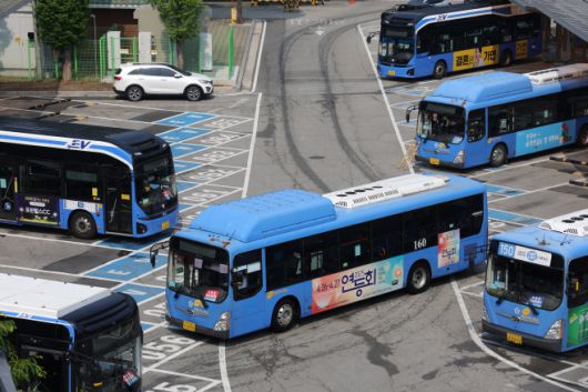 서울시의 한 공영차고지에서 버스들이 운행을 준비하며 대기하고 있다./연합 |