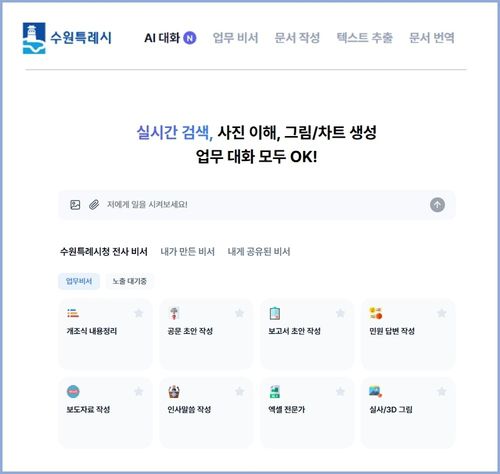 수원특례시(시장 이재준)가 생성형 인공지능(AI)을 행정 전반에 활용하기 위해 12일 공직자를 대상으로 '수원 인공지능(AI) 업무 비서' 서비스를 개시했다.