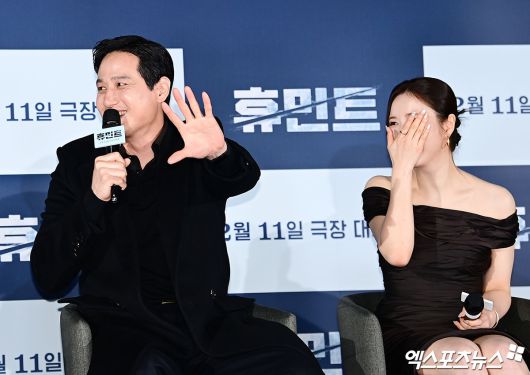 (엑스포츠뉴스 박지영 기자) 12일 오전 서울 자양동 롯데시네마 건대입구점에서 영화 '휴민트' 제작보고회가 진행됐다. 이날 행사에 참석한 배우 박해준과 신세경이 이야기를 나누고 있다. 박지영 기자 jypark@xportsnews.com