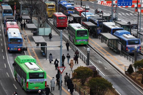 통상임금 판결에 따른 임금 인상안을 두고 사측과 첨예하게 대립해온 서울 시내버스 노조가 파업 예고일을 하루 앞둔 12일 오전 서울 중구 서울역 버스환승센터로 버스가 도착하고 있다. 2026.1.12 [연합뉴스 제공] |