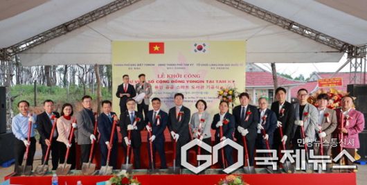 이상일 용인특례시장이 지난해 2월 26일(현지시각) 베트남 국제연꽃마을에서 개최한 용인 스마트 디지털도서관 착공식에 참석했다.(사진=용인시) |