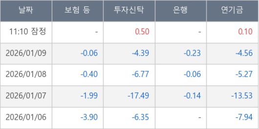[표] 주요 기관별 순매매량 (단위 만주)