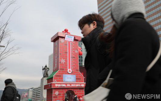 [서울=뉴스핌] 이길동 기자 = 12일 서울 종로구 광화문 광장에 설치된 사랑의 온도탑 나눔온도가 103.9도를 가리키고 있다. 사랑의열매 사회복지공동모금회는 이날 '희망 2026 나눔 캠페인'의 사랑의 온도탑 나눔 온도가 100도를 돌파했다고 밝혔다. 11일 자정까지 사랑의 열매를 통해 모두 4,676억 원이 모금돼 목표액인 4,500억 원의 103.9%를 기록했다. 2026.01.12 gdlee@newspim.com