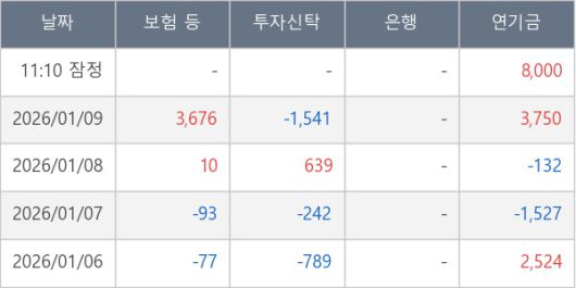 ※ 사모펀드 등 일부 기관의 순매매량은 표시되지 않음