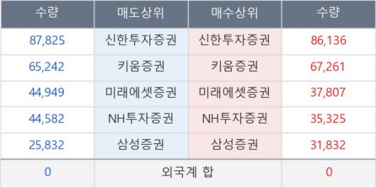 [표] 외국인ㆍ기관 순매매량 (단위 주)