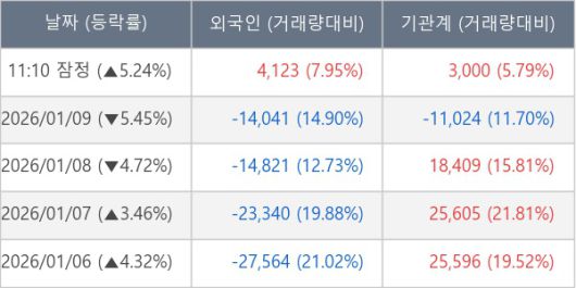 ※ 사모펀드 등 일부 기관의 순매매량은 표시되지 않음