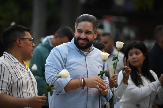 11일(현지시각) 베네수엘라 수도 카라카스의 볼리바르 광장에서 열린 니콜라스 마두로 대통령 지지 집회에서 마두로 대통령의 아들 니콜라스 마두로 게라 베네수엘라 국회의원이 지지자들과 소통하고 있다. 열린 AFP 연합뉴스 |