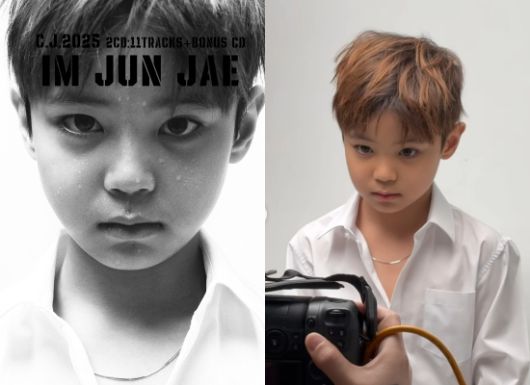 사진 속에는 지난 2002년 발매한 임창정의 아홉 번째 정규 앨범 표지를 따라 하는 아들 준재 군의 모습이 담겨 있다. 젊은 시절 임창정을 쏙 빼닮은 닮은꼴 외모가 시선을 사로잡는다.