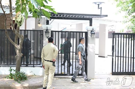 (서울=뉴스1) 이재명 기자 = 청와대는 12일 캄보디아 거점 성 착취 스캠범죄 조직원 26명을 검거했다고 밝혔다. 강유정 청와대 대변인은 이날 오전 춘추관에서 브리핑을 통해 "범정부 초국가범죄특별대응TF는 지난해 2월부터 캄보디아 프놈펜에서 국가기관을 사칭하고, 여성들을 대상으로 성 착취 범죄까지 자행한 스캠범죄 조직원 26명을 캄보디아 경찰을 통해 현지에서 검거하는 성과를 거뒀다"고 말했다. 사진은 캄보디아 경찰관이 범죄 단지를 단속하는 모습. (초국가범죄특별대응 TF 제공. 재판매 및 DB 금지) 2026.1.12/뉴스1