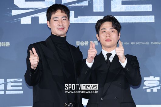 [스포티비뉴스=서울, 곽혜미 기자] 영화 '휴민트' 제작보고회가 12일 오전 서울 광진구 자양동 롯데시네마 건대입구점에서 열렸다. 배우 조인성, 박정민이 포즈를 취하고 있다.