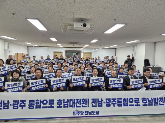 민주당 전남도당은 12일 오전 도당 회의실에서 제2차 상무위원회를 열고 ‘전남·광주 통합 추진’을 만장일치로 의결했다. 이어 ‘호남 대전환을 위한 전남·광주 통합 결의대회’를 개최해 통합 추진에 대한 공식 입장과 결의를 대내외에 천명했다.