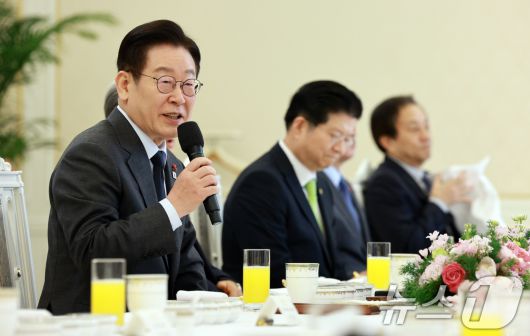 (서울=뉴스1) 이재명 기자 = 이재명 대통령이 12일 청와대에서 열린 종교지도자 초청 오찬간담회에서 발언하고 있다. (청와대통신사진기자단) 2026.1.12/뉴스12expulsion@news1.krCopyright ⓒ 뉴스1. All rights reserved. 무단 전재 및 재배포, AI학습 이용 금지.