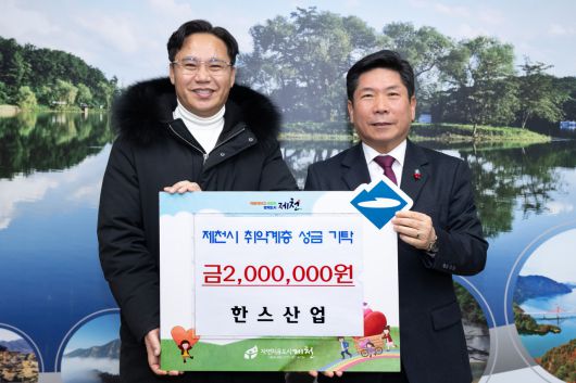 12일 안전화 판매 대리점인 한스산업(대표 한효정)이 제천시에 이웃 돕기 성금 200만원을 기탁했다.