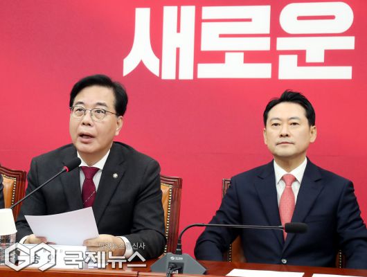 (서울=국제뉴스) 송언석 국민의힘 원내대표가 12일 서울 여의도 국회에서 열린 최고위원회의에서 발언하고 있다./사진=이용우 기자