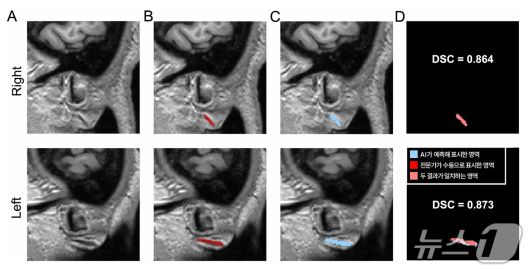 전문가 판독과 AI 분할 결과의 일치도를 나타내는 다이스 유사도 계수(DSC)는 0.734와 0.714로 나타났고 프랭크 징후 유무를 구분하는 곡선하면적(AUC) 값은 모두 0.9 이상을 기록해 높은 정확도를 보였다.
