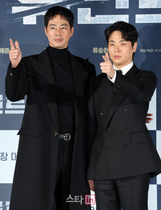 [이데일리 스타in 방인권 기자] 배우 조인성(왼쪽)과 박정민이 12일 서울 광진구 롯데시네마 건대점에서 열린 영화 '휴민트' 제작보고회에 참석해 포토타임을 갖고 있다.