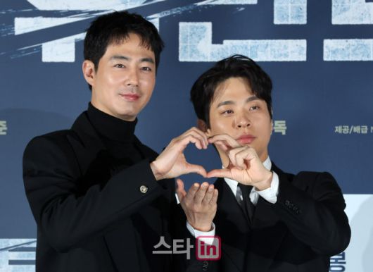 [이데일리 스타in 방인권 기자] 배우 조인성(왼쪽)과 박정민이 12일 서울 광진구 롯데시네마 건대점에서 열린 영화 '휴민트' 제작보고회에 참석해 포토타임을 갖고 있다.