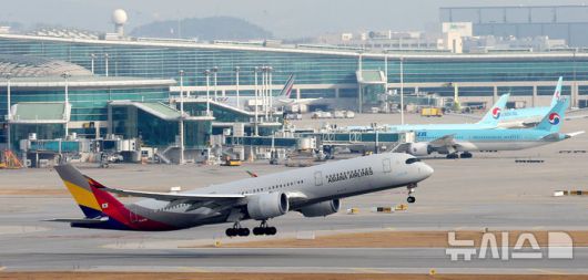 [인천공항=뉴시스] 추상철 기자 = 12일 오전 인천국제공항에서 아시아나항공 여객기가 2터미널을 지나 날아 오르고 있다. 아시아나항공은 오는 14일부터 기존 인천국제공항 1터미널에서 2터미널로 운항이 변경된다. 2026.01.12. scchoo@newsis.com |