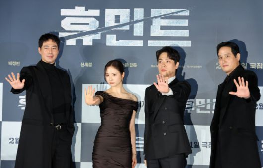 12일 서울 광진구 롯데시네마 건대입구에서 열린 ‘휴민트’ 제작보고회에는 류승완 감독과 주연 배우 조인성, 박정민, 박해준, 신세경이 참석해 작품에 대한 자신감을 드러냈다.