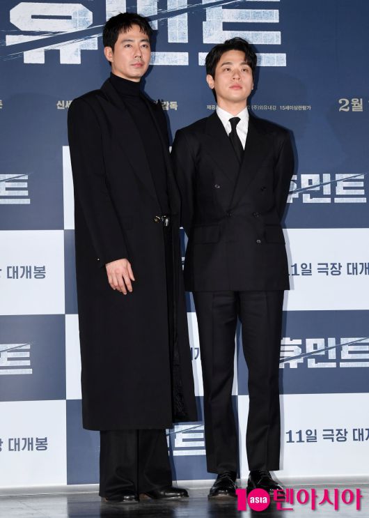 [텐아시아=조준원 기자]배우 조인성과 박정민이 12일 서울 광진구 롯데시네마 건대입구에서 열린 영화 '휴민트' 제작보고회에 참석하고 있다.