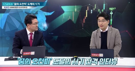 [사진=어쨌든경제 방송 캡쳐] 박희찬 미래에셋증권 리서치센터장(사진 우측)이 지난 9일 이데일리TV 어쨌든 경제 방송 프로그램에 출연해 유은길 경제전문기자(사진 좌측)의 질문에 답하고 있다. |