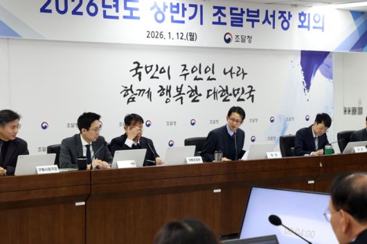백승보 조달청장은 12일 정부대전청사에서 각 국장과 부서장, 전국 11개 지방청장 등 과장급 이상 간부들이 참석하는 ‘2026년 상반기 조달부서장 회의’를 개최했다.