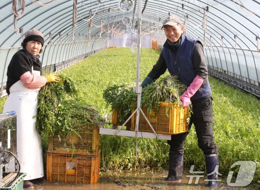 (대구=뉴스1) 공정식 기자 = 한파가 이어진 12일 대구 동구 미대동 논골농원에서 팔공산 미나리 출하가 한창이다. 팔공산 미나리는 해발 200m 이상 팔공산 자락의 공기와 150m 암반 지하수를 이용해 친환경 공법으로 재배된다. 아삭한 식감과 진한 향이 일품이며, 건강식품으로 인기를 끌고 있다. 2026.1.12/뉴스1