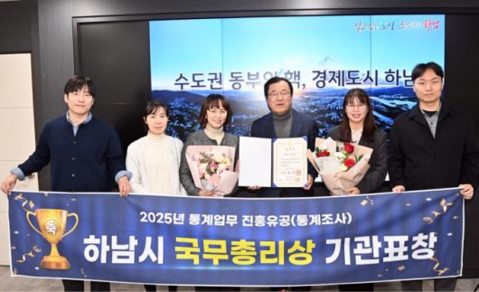 경기 하남시는 국가데이터처가 주관하는 통계조사에서 통계업무 발전에 기여한 공로를 인정받아 지난 9일 통계인재개발원에서 '2025년 통계업무 진흥유공'부문 국무총리 기관표창을 수상했다고 12일 밝혔다.