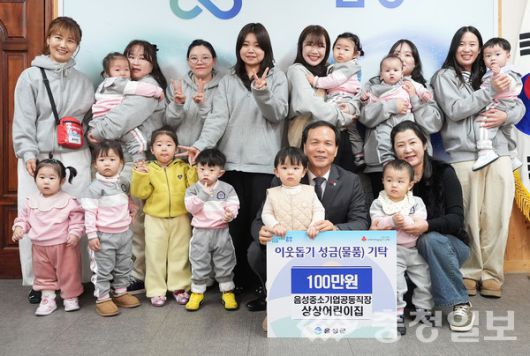 맹동면 소재 음성중소기업공동직장 상상어린이집(원장 홍성미)에서는 이날 크리스마스 행사 수익금과 교사들 기부금을 합쳐 성금 100만원을 음성군에 기탁했다.