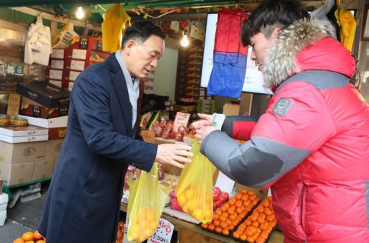 [서울=뉴시스] 개포시장에서 장을 보는 조성명 강남구청장. 2026.01.12. (사진=강남구 제공) *재판매 및 DB 금지 |