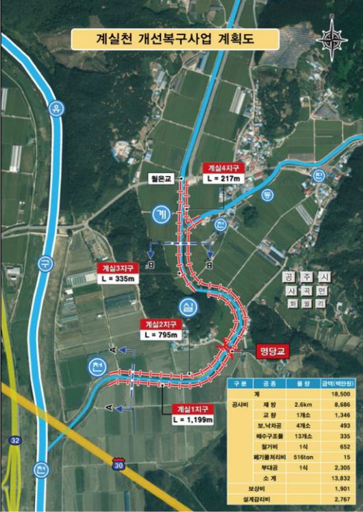 공주시는 총 185억 원을 투입해 하천 폭을 대폭 넓히고 제방·교량·배수체계를 일괄 재정비하는 '계실천 개선복구사업'을 본격 추진한다고 12일 밝혔다.