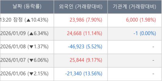 ※ 사모펀드 등 일부 기관의 순매매량은 표시되지 않음