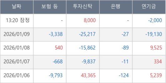 [표] 주요 기관별 순매매량 (단위 주)