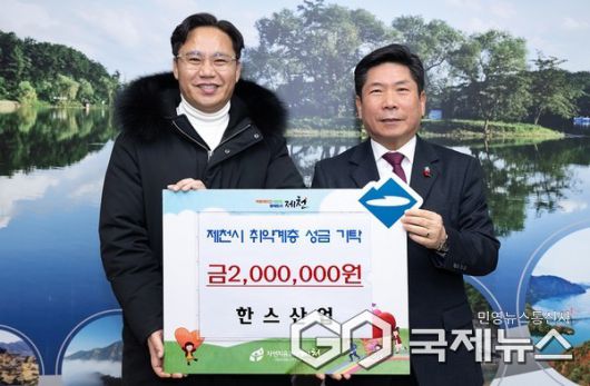 (제천=국제뉴스) 김상민 기자 = 충북 제천시 소재 기업인 한스산업(대표 한효정)이 지난 12일 제천시청을 방문해 어려운 이웃을 위한 성금 200만 원을 기탁했다.