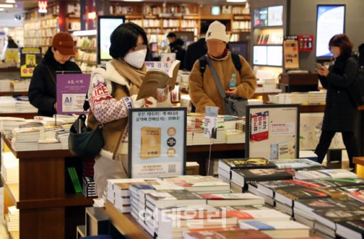 [이데일리 김태형 기자] 연초 코스피 상승이 이어지는 가운데 12일 서울 교보문고 광화문점에서 시민들이 주식투자 등 관련 서적이 진열된 경제코너에서 관련 책을 살펴보고 있다.