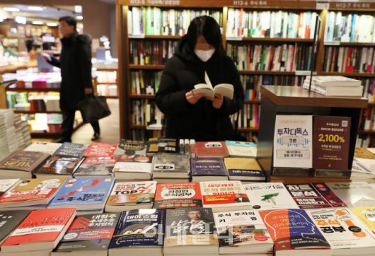 [이데일리 김태형 기자] 연초 코스피 상승이 이어지는 가운데 12일 서울 교보문고 광화문점에서 시민들이 주식투자 등 관련 서적이 진열된 경제코너에서 관련 책을 살펴보고 있다.