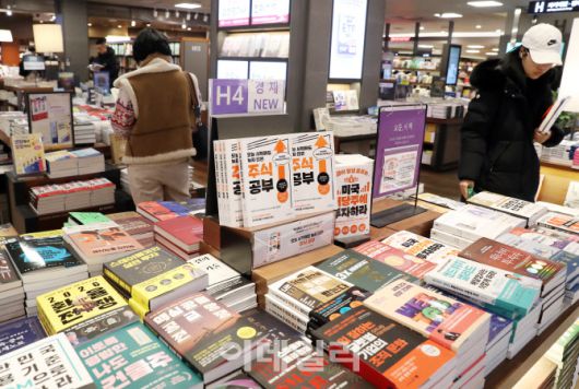 [이데일리 김태형 기자] 연초 코스피 상승이 이어지는 가운데 12일 서울 교보문고 광화문점에서 시민들이 주식투자 등 관련 서적이 진열된 경제코너에서 관련 책을 살펴보고 있다.