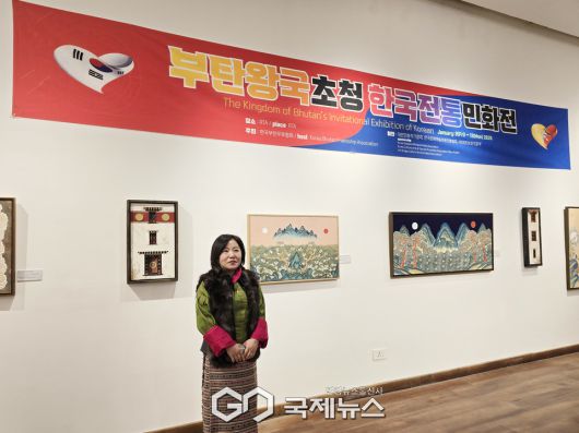 (부탄=국제뉴스) 유지현 기자 = 9일 부탄 팀푸시 RTA에서 '제2회 부탄 국제 ESG 동맹포럼' 부대행사로 열린 '부탄왕국 초청 한국 전통 민화전' 개막식에 참석한 김민경 한국부탄우호협회 회장.