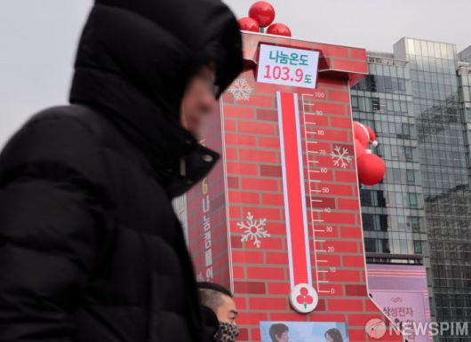 [서울=뉴스핌] 이길동 기자 = 12일 서울 종로구 광화문 광장에 설치된 사랑의 온도탑 나눔온도가 103.9도를 가리키고 있다. 사랑의열매 사회복지공동모금회는 이날 ‘희망 2026 나눔 캠페인’의 사랑의 온도탑 나눔 온도가 100도를 돌파했다고 밝혔다. 11일 자정까지 사랑의 열매를 통해 모두 4,676억 원이 모금돼 목표액인 4,500억 원의 103.9%를 기록했다. 2026.01.12 gdlee@newspim.com