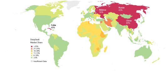 중국, 러시아, 아프리카 전역에서 사용량이 급증했으며 특히 아프리카 지역의 딥시크 사용량은 타 지역 대비 2~4배 높은 것으로 추정됐다. 반면 서비스가 이미 안정적으로 구축된 한국이나 이스라엘과 같은 국가에서는 도입이 미미한 수준에 그치며 지역별로 뚜렷한 차이를 보였다.