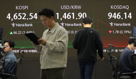 [이데일리 권오석 기자] 4600선에 안착한 코스피가 장중 지수 4610과 4620 사이에서 등락을 반복하고 있다. 외국인 투자자들의 대규모 매도세에도 개인과 기관 투자자들이 맞대응하는 상황이다.