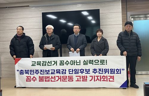 이어 "우리는 선거기간이 아님에도 엄정한 중립이 요구되는 공기관 앞에서 충북교육을 정치 선동의 조기 선거판으로 만든 이들의 반교육적·반민주적 행위를 규탄한다"면서 회견 뒤 경찰에 고발장을 제출하겠다고 덧붙였다.