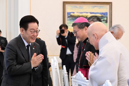 이 대통령은 “원래 종교의 본질이 사랑을 실천하는 거라고 한다”며 “우리 국민이 서로 화합하고 포용적인 입장에서 함께 손잡고 살아갈 수 있도록 지금까지도 많은 역할 해주셨지만, 앞으로도 더 큰 역할 부탁드린다”고 말했다.