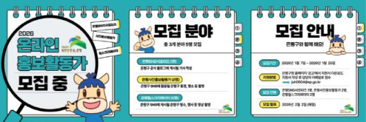 아시아투데이 박지숙 기자 = 서울 은평구가 주민 참여형 사회관계망서비스(SNS) 콘텐츠를 확대하고 구정 홍보의 다양성을 높이기 위해 '2026년 은평구 온라인 홍보활동가'를 모집한다.