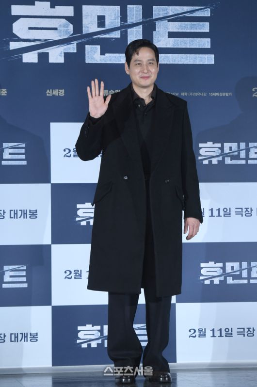 박해준이 12일 서울 성동구 롯데시네마 건대입구에서 열린 영화 ‘휴민트’ 제작보고회에서 포즈를 취하고 있다.