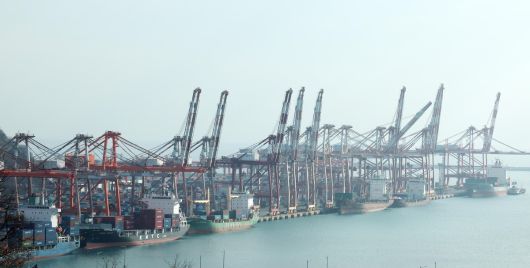 최근 부산 남구 신선대 부두에 컨테이너 선박들이 정박해 있다. 뉴시스 |