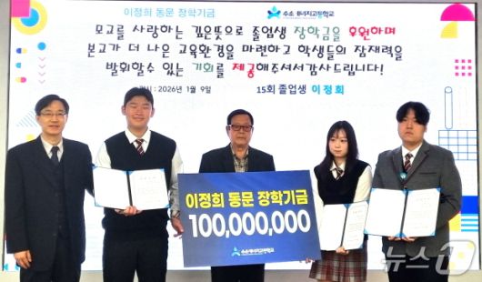 실제 이 학교 졸업생인 이정희 씨가 지난 9일 1억 원을 기탁했다. 33년간 경찰관으로 재직한 뒤 퇴직한 이 씨는 "후배들에게 도움이 되고 싶다"며 거액을 전달했다.
