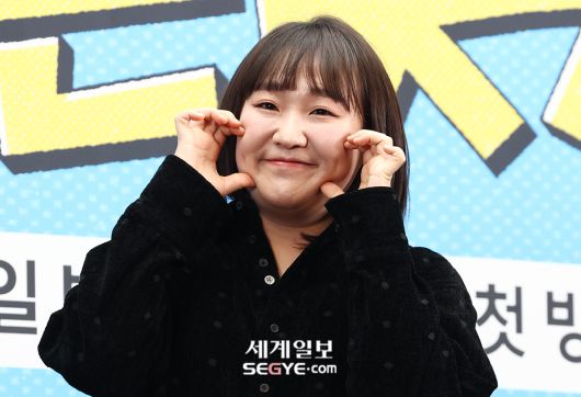 개그맨 이수지가 12일 서울 마포구 상암동 스탠포드 호텔에서 열린 JTBC ‘혼자는 못 해’의 제작발표회에 참석해 포즈를 취하고 있다.