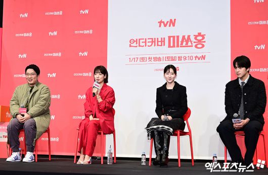 (엑스포츠뉴스 박지영 기자) 12일 오후 서울 구로구 더링크 호텔에서 tvN 새 토일드라마 '언더커버 미쓰홍' 제작발표회가 진행됐다. 이날 행사에 참석한 박선호 감독과 배우 박신혜, 하윤경, 조한결이 인사하고 있다.박지영 기자 jypark@xportsnews.com
